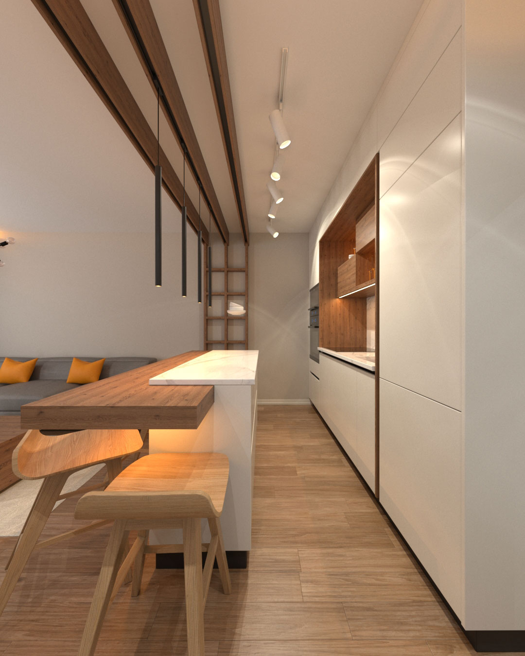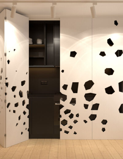Ova rustična kuhinja donosi eleganciju i toplinu svog stila. Radna ploča od belog kamena oplemenjuje prostor svojom čistoćom i sofisticiranošću. Rustična krila od medijapana, belo ofarbana, doprinose šarmu kuhinje, dok delovi korpusa u bež boji pružaju skladan kontrast. Pločice calacata dodaju karakter i posebnu teksturu ovom prostoru, stvarajući atmosferu tradicije i modernog spoja.